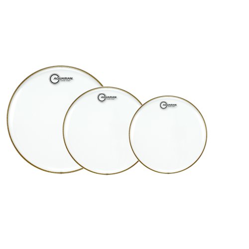 - Pack peaux de batterie Aquarian série Classic Clear simple pli 10"-12"-14" + TC 14" Texture coated